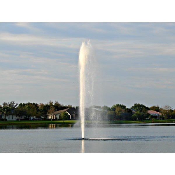 Add aeration to your pond with our Geyser fountain pattern. This is a multi-port nozzle that achieves a dramatic vertical pattern in a solid column of water, fanning slightly on top.